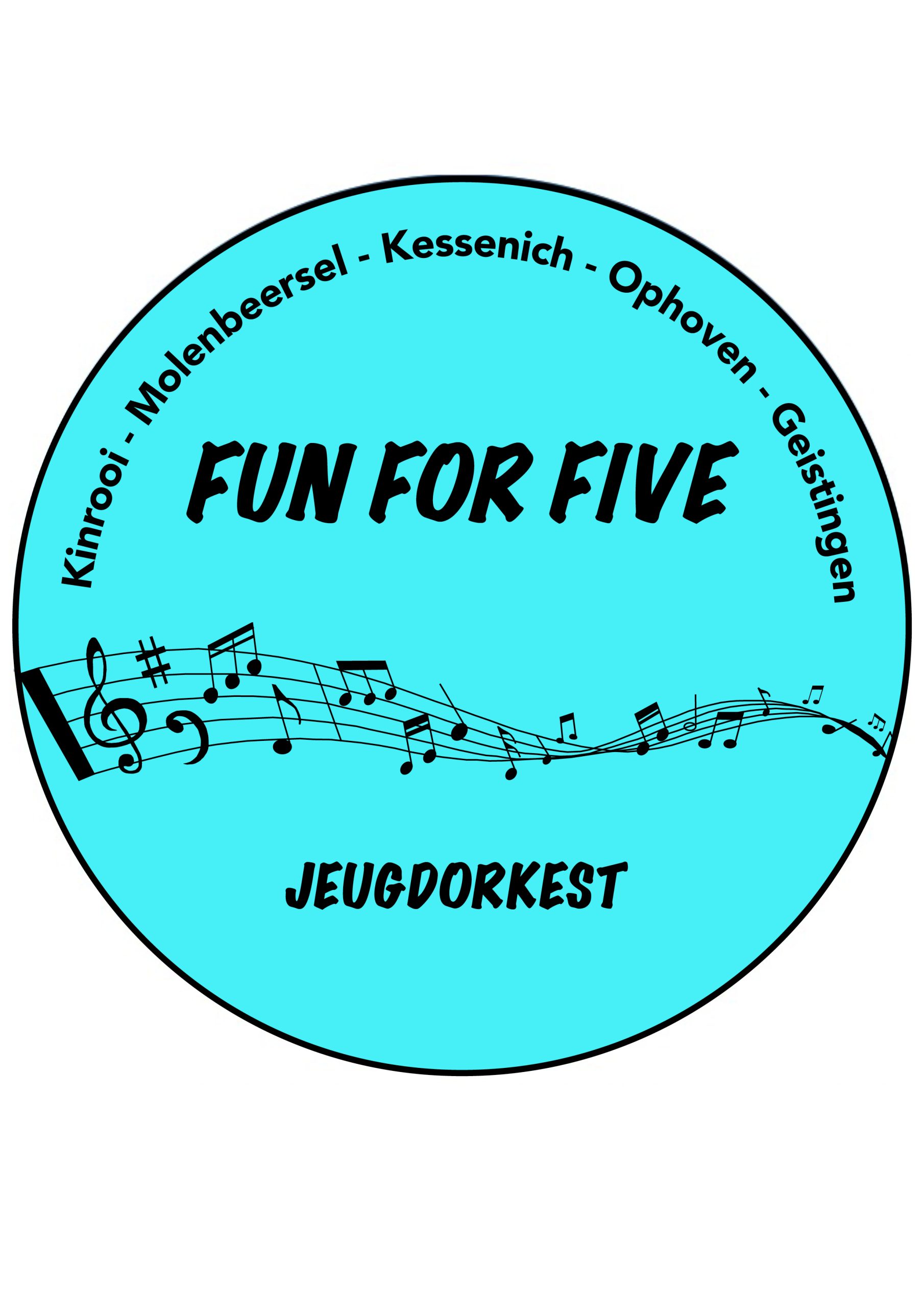 Samen muziek maken is super leuk maar niet altijd even gemakkelijk. Daarom starten onze beginnende muzikanten in het jeugdorkest Fun For Five. Een orkest bestaande uit allemaal jonge muzikanten uit de fusie Kinrooi. Op een speelse manier leer je in een groep muziek maken. Naast verschillende concerten worden er nog tal van andere toffe activiteiten georganiseerd. Zo gaan we in de zomer op kamp en staan er paas- en kerstactiviteiten op de agenda. Kortom de ideale manier om je klaar te stomen voor de grote fanfare.